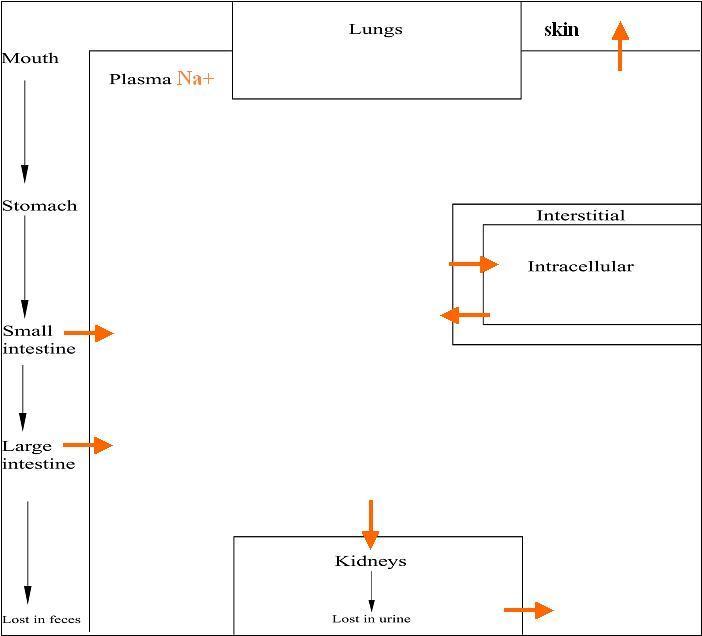 Each arrow indicates a shift of Sodium. Drag the appropriate causes to the arrows.