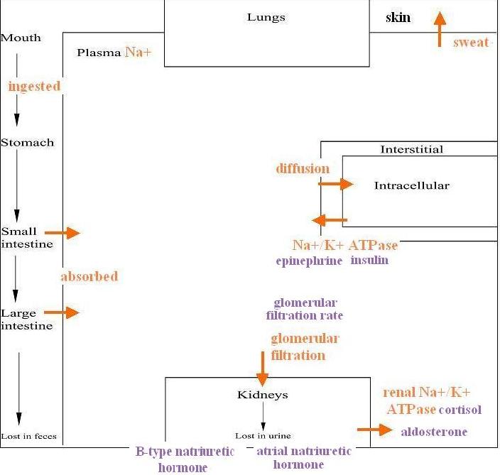 When Na+ moves, water follows; so a change in blood Na+ will almost always cause a change in blood volume. |