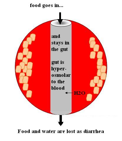 Right! This is called osmotic diarrhea or explosive diarrhea. The man also complains of terrible gas. To understand this, we have to look at the last part of the intestines. |