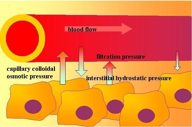 The plasma contains more proteins than the interstitial fluids do, so osmosis causes some tissue fluid to move into the capillaries. This is called the capillary colloidal osmotic pressure. 'Colloidal' means it is caused by proteins, rather than other solutes.
