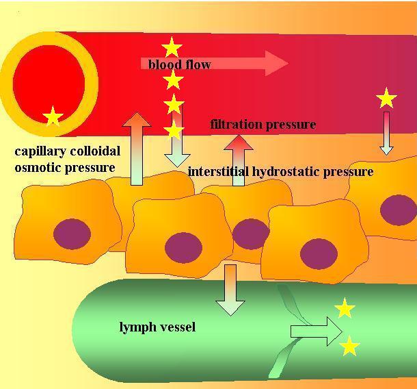 Drag each of the causes of edema on the right to the star that best indicates the part of normal fluid balance it interferes with.