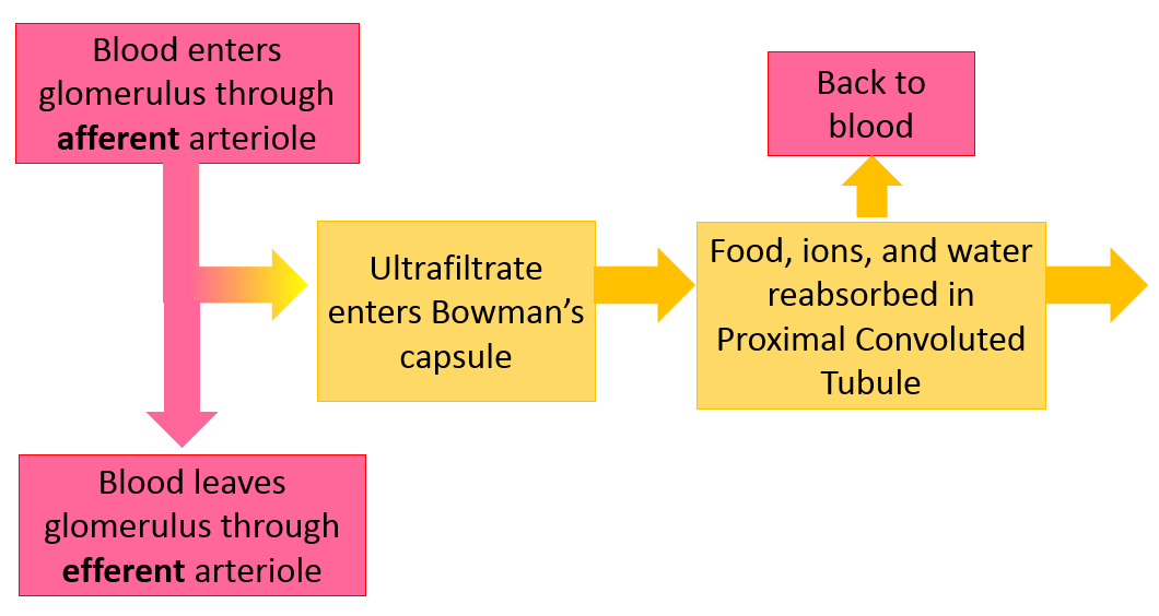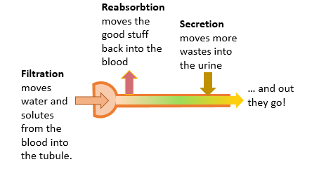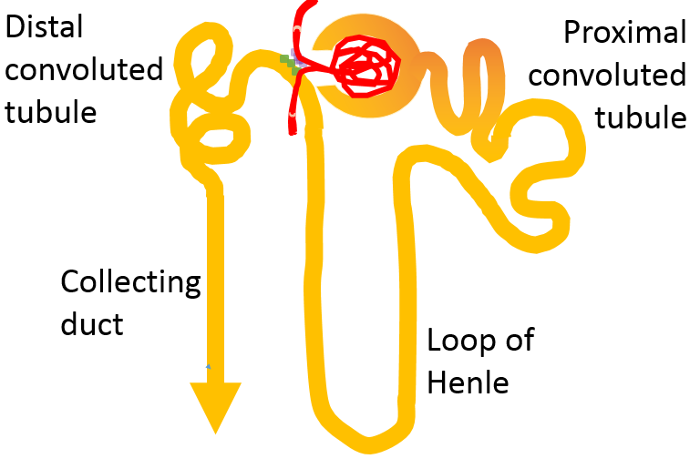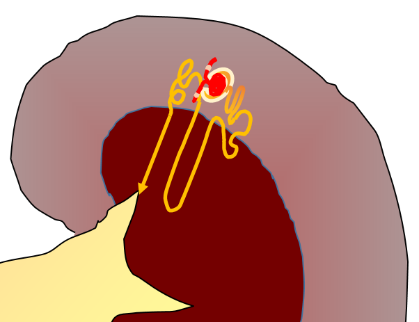 ![]() First, let's get some terminology out of the way. Your blood passes into a 'ball' of capillaries called the glomerulus (pronounce it as if it glows). The end of the nephron wraps around this ball of capillaries. This expanded end of the nephron is called Bowman's capsule. ![]() Image modified from Pixabay, used under a Creative Commons license The fluid that goes through the filter into your kidney tubule is called ultrafiltrate. It's actually pretty nice stuff, full of water, ions, and food. To keep your blood clean, you need to filter about 115-125 mL of it every minute. That's called your glomerular filtration rate, or GFR. To manage this, you need lots of nephrons - from 200,000 to over 2.5 million in each kidney! 1 1 - Bertram, J. F., Douglas-Denton, R. N., Diouf, B., Hughson, M. D., & Hoy, W. E. (2011). Human nephron number: implications for health and disease. Pediatric Nephrology (Berlin, Germany), 26(9), 1529–1533. https://doi.org/10.1007/s00467-011-1843-8 Page 4