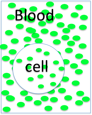Removing the solutes from his blood made it become hypertonic / hypotonic to the cells. That means the cells were hypertonic / hypotonic to the blood. Water moved from the blood into the cells / from the cells into the blood , making the cells shrink / swell . Page 14 A woman was given a hypertonic IV by mistake in the hospital. (Hint: an IV is a solution added directly to the patient's blood)Which of the diagrams below best represents her situation? Click on the figure label to check your answer.