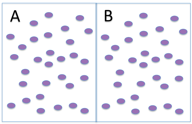 ![]() Side A is hyperosmolar/ hyposmolar/ isosmolar to side B Page 7 I said earlier that osmolarity matters to physiologists because it controls water movement. What is that about?To understand it, we'll need to look back at the first diagram, the one where we drew the water molecules as well as the solute molecules. Remember, water molecules can cross the membrane if they bump into it as they move randomly around in the solution. The solution with the lower osmolarity, side A, contains more water molecules (blue) than side B, so more water molecules will bump into that side of the membrane and cross it. That means that more water molecules will cross from side A to side B than will cross from side B to side A. Gradually, WATER WILL MOVE FROM THE HYPOSMOLAR SOLUTION INTO THE HYPEROSMOLAR SOLUTION. There's a simpler way to remember this: Water follows solutes.While this is not entirely accurate, it will work for interpreting most of the situations in basic physiology and pathophysiology. Page 8 Predict water movement between the solutions. Remember, in these drawings we are not indicating the water molecules - only the solutes.